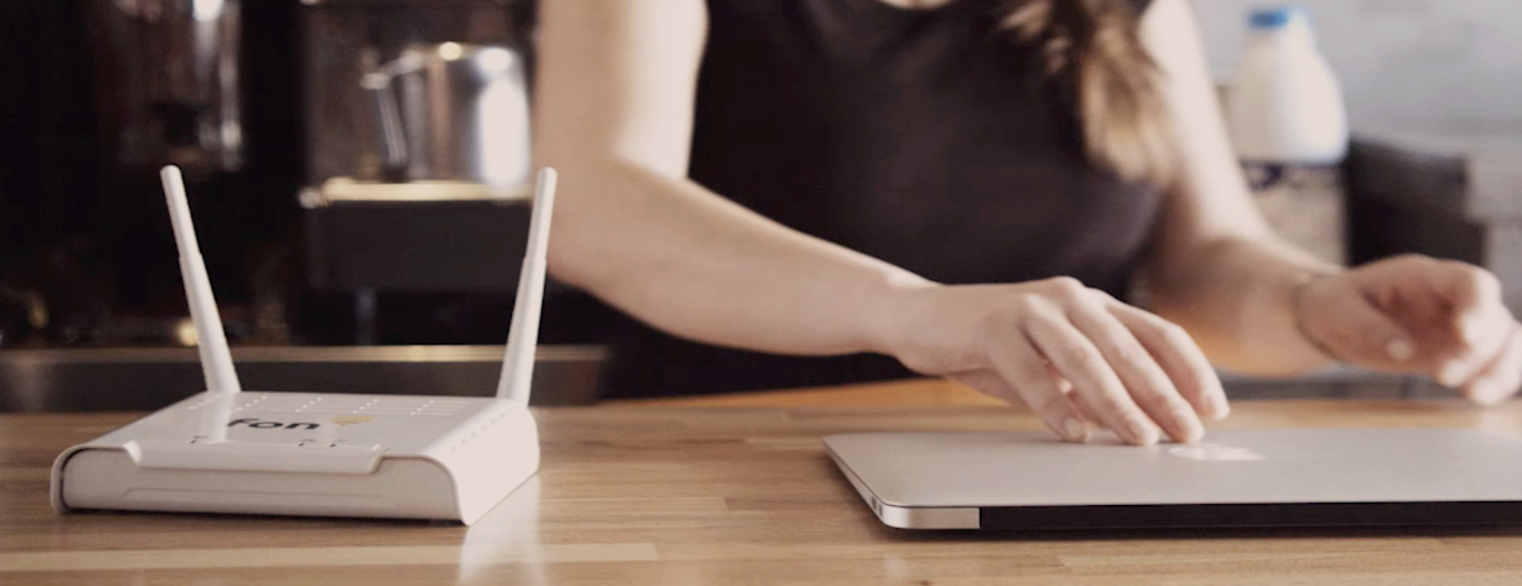 Fonルーターに電源とインターネットにつながったLANケーブルを接続するだけで、安全なWi-Fiをお客様に提供可能です